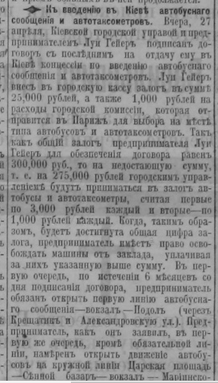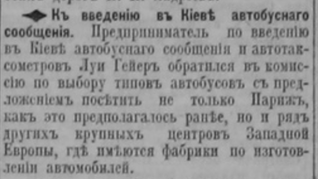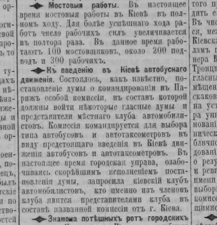К введению в Киеве автобусного сообщения и автотаксометров |