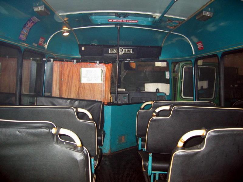 КАвЗ-3271 № 3606 АП-6 Салон. Маловато сидений как для городского автобуса, да и маленькое расстояние между сиденьями - всё это делает удобной машину для местного сообщения в сельской местности.[Автор: Nick, 2004-01-13]