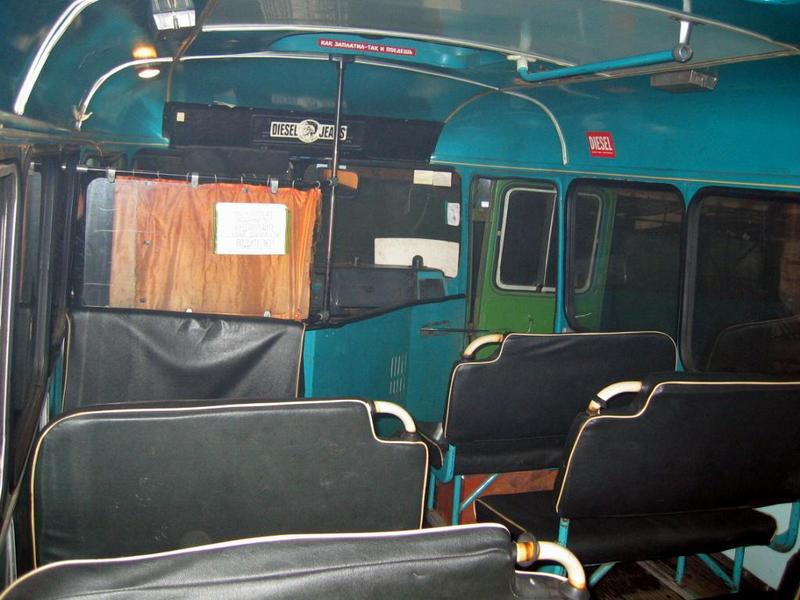 КАвЗ-3271 № 3606 АП-6 Салон. Вид с заднего сиденья. Справа и слева находится по 8 посадочных мест, а сзади - 5, всего в салоне 21 посадочное место.[Автор: Nick, 2004-01-13]