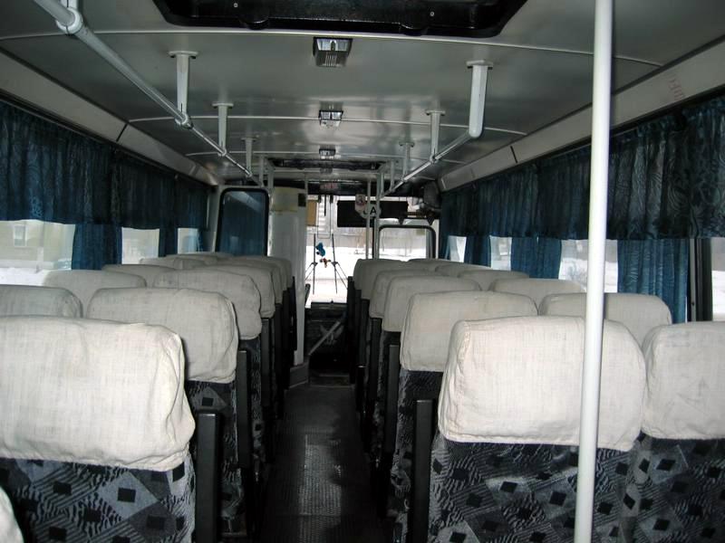 ЛАЗ-А141 № 034-38 КА АП-6 Салон. Вид с задних сидений. Наличие передней и задней одинарных дверей ускоряет скорость посадки и высадки пассажиров.[Автор: Nick, 2004-01-13]
