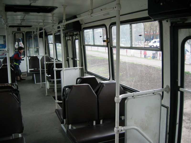 ЛАЗ-52527 № 1605 К/ст "Пл. Тараса Шевченко" , маршрут 99 Салон "ЛАЗ-52527". Вид на двери и правый борт автобуса.[Автор: Nick, 2003-04-29]