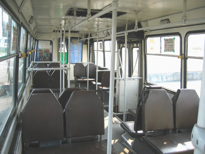 ЛАЗ-52523 № 1635 АП-6 Вид с задней площадки. Бросается в глаза большое количество поручней.[Автор: Nick, 2003-04-24]
