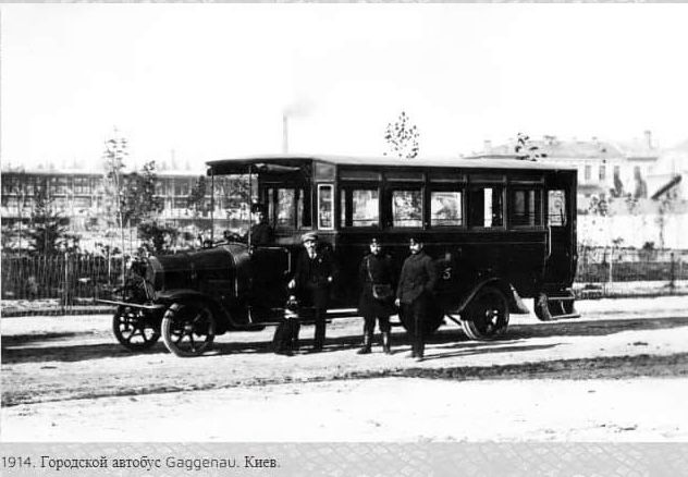 Список ПС1913-1915 Хоча перші пропозиції організації автобусного руху датуються раніше, ніж 1913, наша розповідь розпочинається 10 квітня 1913 року, коли Київська Міська Управа підписує договір з М. Рубінштейном, що діяв за дорученням фірми Benz-Gaggenau про постачання 5 автобусів вищезазначеної фірми. Вартість автобуса становила біля 11 тис. рублів. 27 травня до міста надходить два автобуси Benz-Gaggenau SO на 28 місць, які того ж дня оглянуті представниками Міської Комісії поблизу Театру Соловцова. На початку червня надійшло ще три автобуси. Шоферів та обслуговуючий персонал забезпечувала „Сибірська торгово-промислова та біржова артіль” (Москва). Шини марки Континенталь постачала „Континентальна каучукова та гутаперчева компанія” (Ганновер). Протягом квітня-травня проводиться реконструкція вулиць, якими мали пролягти перші автобусні маршрути (зокрема, Безаківська від вокзалу до Жилянської; деякі перетини з трамвайною колією; також планувалося облаштування окремої смуги для автобусів на Олександрівському узвозі). Затверджуються правила користування автобусом та маршрути з тарифними дільницями: № 1. Олександрівська пл. – Царська пл. – Міський театр – Вокзал (3 дільниці). № 2. Олександрівська пл. – Царська пл. – Промислова виставка (2 дільниці). Плата за першу дільницю становила 10 коп., за кожну наступну – 5 коп. У зв’язку з непевністю щодо стану дороги поблизу вокзалу також про всяк випадок затвердили резервний маршрут № 1 Володимирська вул. (від Ірининського стовпа) – Міський театр – Промислова виставка (2 дільниці), цей маршрут мав пролягати через Фундуклеївську вул. Рух автобусів розпочався 1 червня 1913 р. за єдиним маршрутом Царська пл. – Промислова виставка. На лінії працювало два автобуси. У перший день проїзд був безкоштовний (пасажирам пропонувалося офірувати на користь Товариства швидкої медичної допомоги, при цьому зібрано 38 рублів 69 коп.), а з 2 червня вартість проїзду становила 10 коп. Перші три дні експлуатації принесли 526,5 рублів виручки. Перша в історії київського автобуса аварія сталася 6 червня з автобусом № 2 внаслідок того, що візник не поступився дорогою автобусу (правилами затверджувалося, що автобус має перший після трамваю пріоритет як учасник дорожнього руху). Незважаючи на те, що водій автобуса встиг загальмувати, автобус пошкодив радіатор.