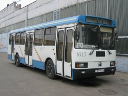 1617 155-83 КА Один из двух "ЛАЗ-52527", пришедших в начале 2002 года. Обратите внимание: у машины - тонированные стёкла и жёлтые поручни в салоне. Ещё одно отличие от предыдущей партии - наличие МКПП вместо ГМКПП.