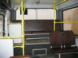 1605 116-02 КА Салон "ЛАЗ-52527". Вид на двери и правый борт автобуса.